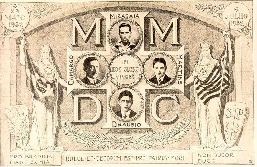 | Esses jovens eram integrantes de um movimento que lutava pela reconstitucionalização do Brasil — Getúlio Vargas havia fechado o Congresso em 1930. | Tiuj junuloj estis membroj de movado kiu batalis por la rekonstituciigo de Brazilo — Getúlio Vargas fermis la Parlamenton en 1930. |